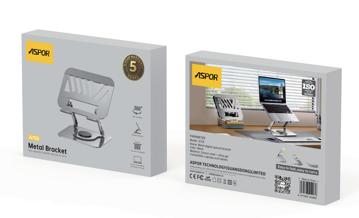 حامل لابتوب ASPOR A703 – قاعدة معدنية قابلة للطي