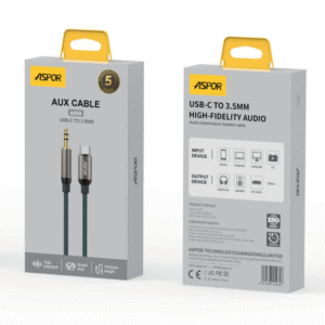 احصل على أداء فائق وسرعة شحن عالية مع كابل ASPOR AC-55 المصمم لتلبية احتياجاتك اليومية. يتميز الكابل بتصميمه المتين وجديلته القوية التي تمنحك مقاومة عالية للتلف والانحناءات المتكررة.