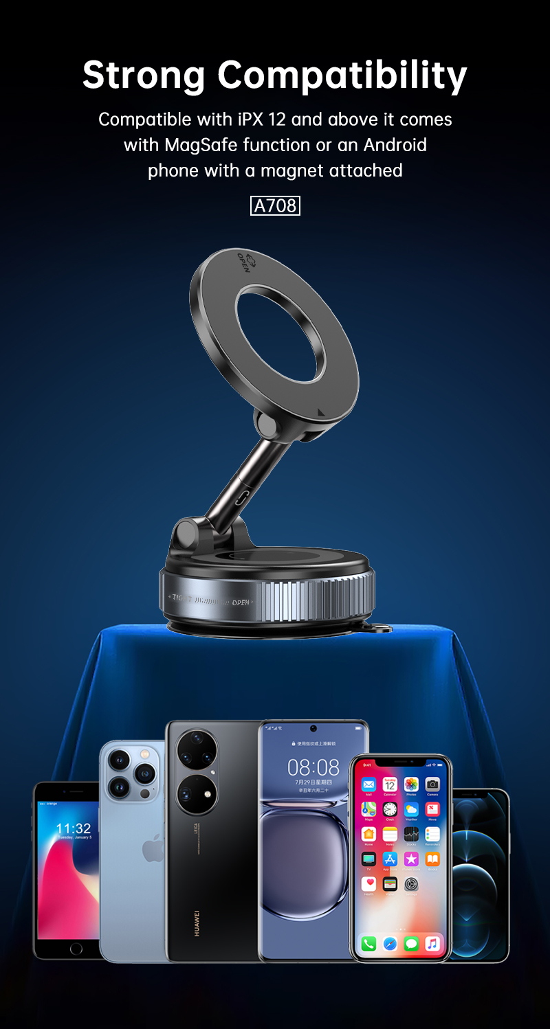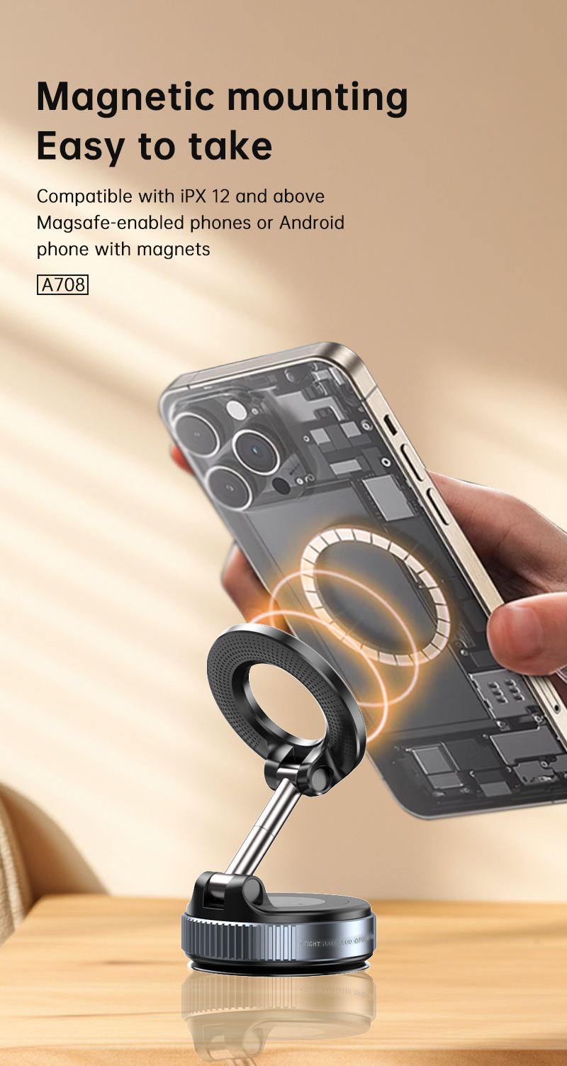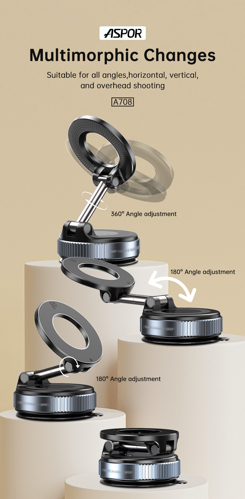 🧲 حامل جوال مغناطيسي ASPOR A708 بتقنية الشفط الفراغي
